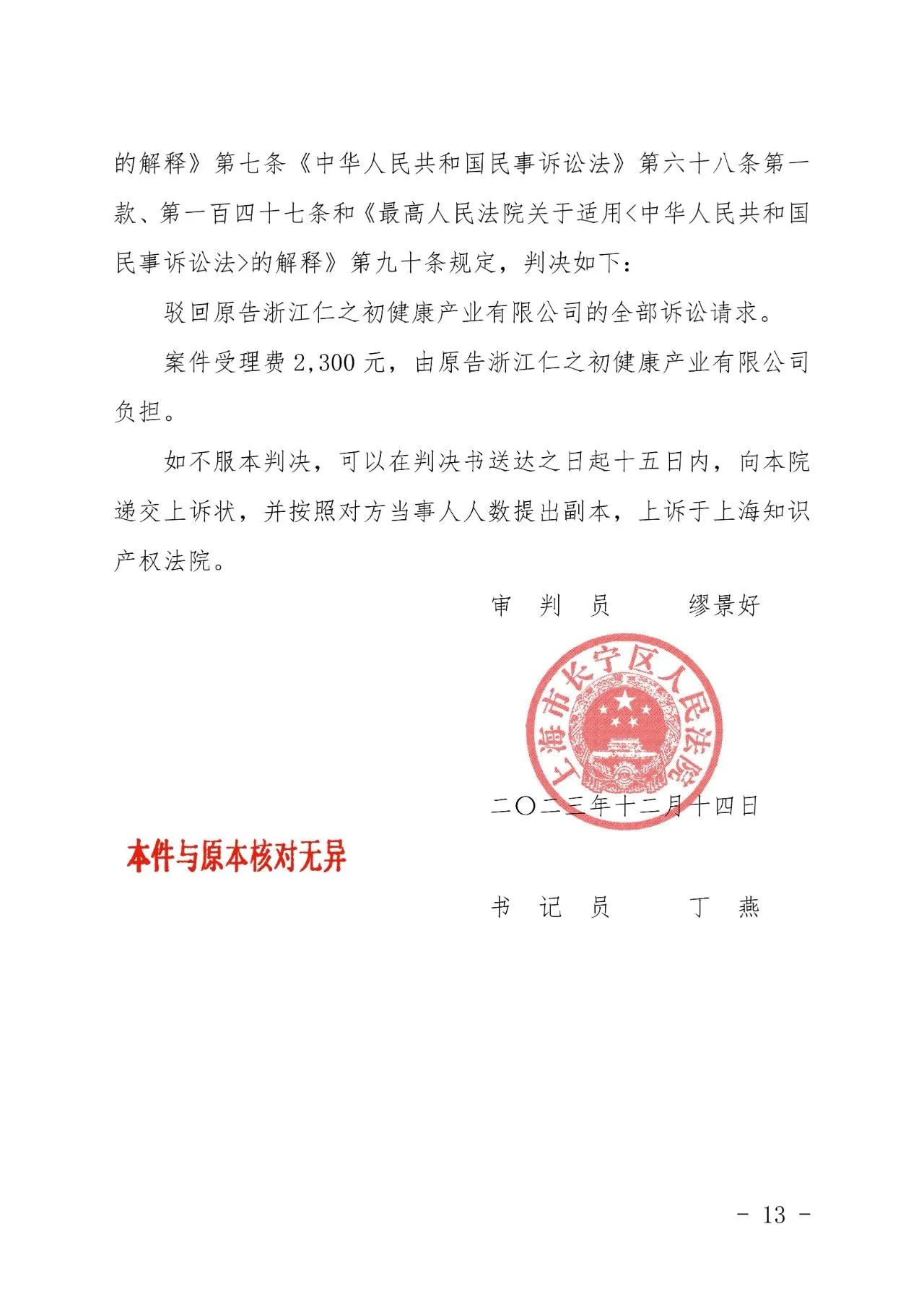 内江辉知胜诉佳讯 | “仁之初健康”著作权及不正当竞争纠纷案,法院:驳回全部诉讼请求!